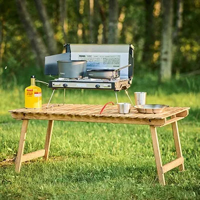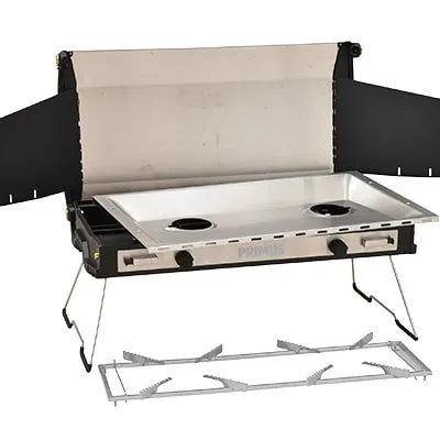 トゥピケは、折りたたみ式スタンドと風防を備えたコンパクト設計のツーバーナーです。