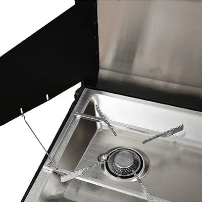 耐久性の高いステンレスゴトクと受け皿は取り外して簡単に洗うことができます。燃料ホースを介した1つのガスカートリッジで2つの火口を使用することができ、無駄なく燃料を使うことが可能です。