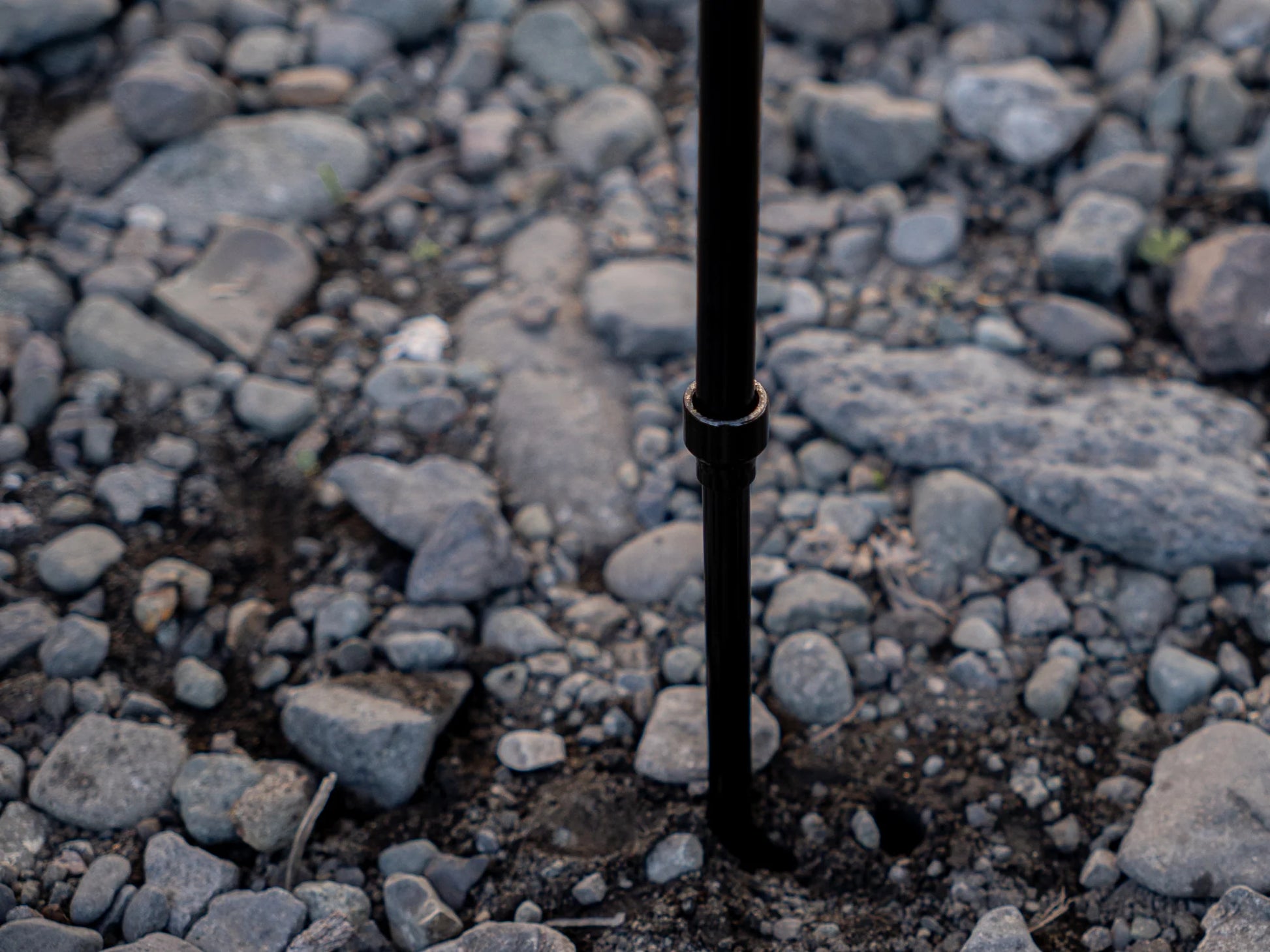 地面固定の場合は、付属のペグを打ち込み、ポールと連結して設置可能です。