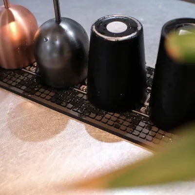 テーブルや棚にスマートにフィットし、幅広いシーンで使える便利なバーマットです。