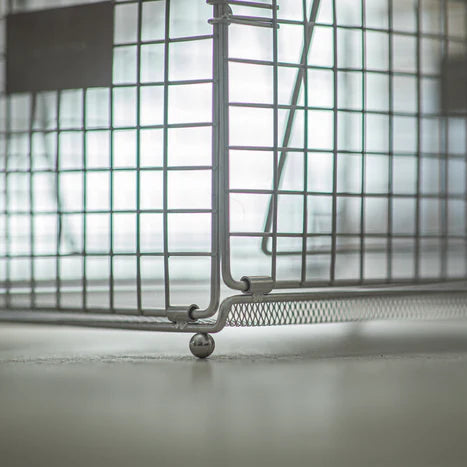 底面のメッシュとスチールボール、側面のグリッドの1.5cm角はSサイズから継承。