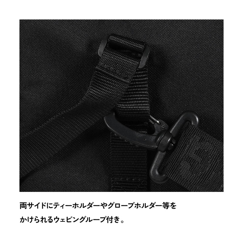 ●両サイドにティーホルダーやグローブホルダー等をかけられるウェビングループ付き。