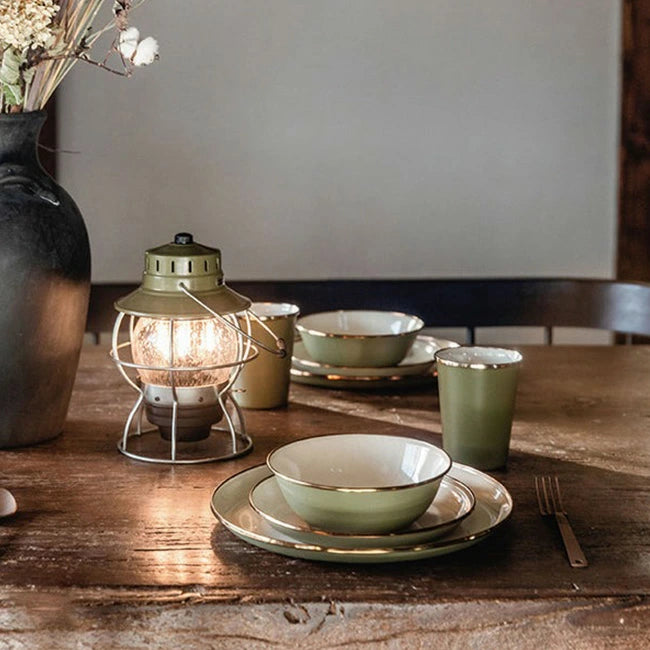 内側は滑らかで斑点のあるヴィンテージホワイト、外側は洗練されたオリーブドラブのマットな質感で、別売りのボウルやカップと組み合わせてお使いいただくのもおすすめです。