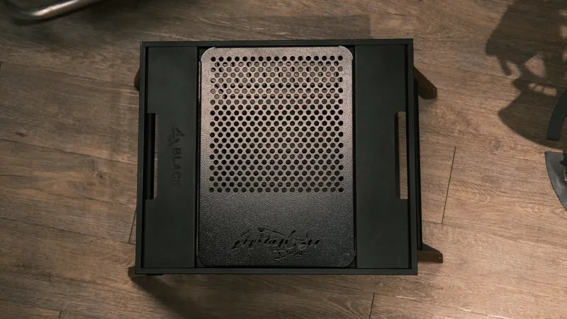 天板中央にBLACK DESIGNの各種プレートが収まる開口があります。