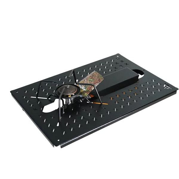BLACK DESIGNの大人気テーブル「日和」「ハレテーブル」「大和」のカスタムパーツ。BXプレートはSOTOのST-310とST-340でご使用いただけます。設計上ガス缶ををしっかりと埋め込みつつ、ガス缶と熱源を分離する構造になっています。IGT規格(1ユニット)のため、様々なテーブルとの互換性もあります。