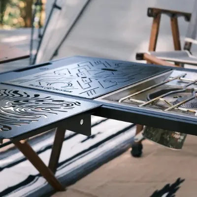 屋内外で活躍する拡張式テーブル。