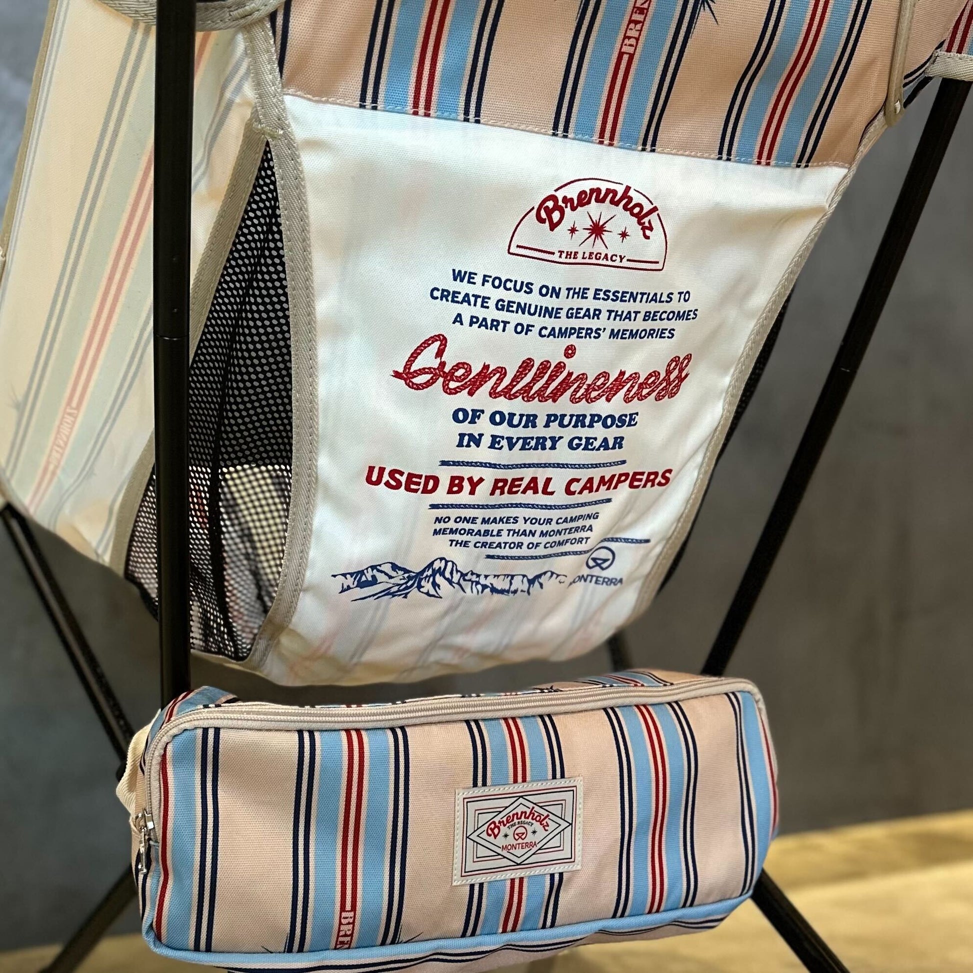 Monterraの洗練された設計思想と、Brennholzの感性豊かなパターンが出会い、 「機能」に「感性」を掛け合わせた特別なチェアが誕生しました。 それは、ただのキャンプチェアではありません。 慣れ親しんだ自然の中に新たな視点をもたらし、あなたのキャンプシーンを一段引き上げる “オブジェ”として存在します。