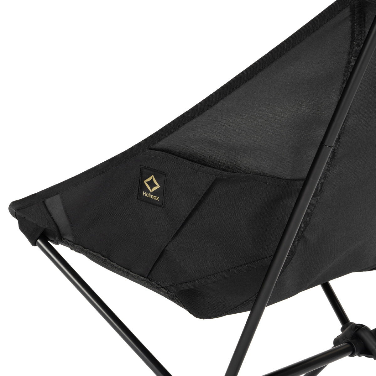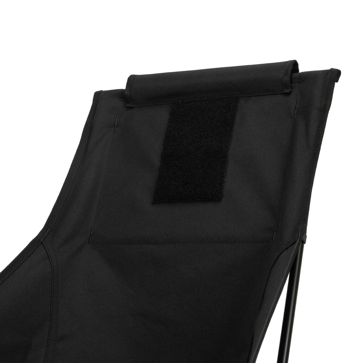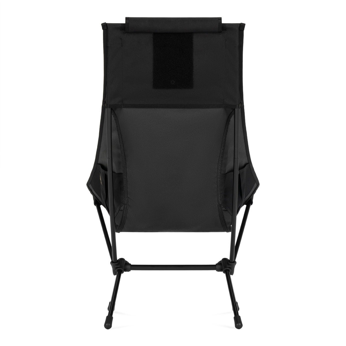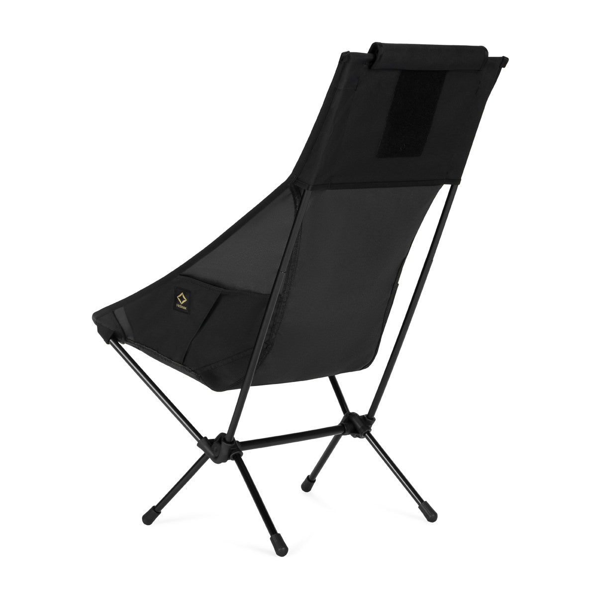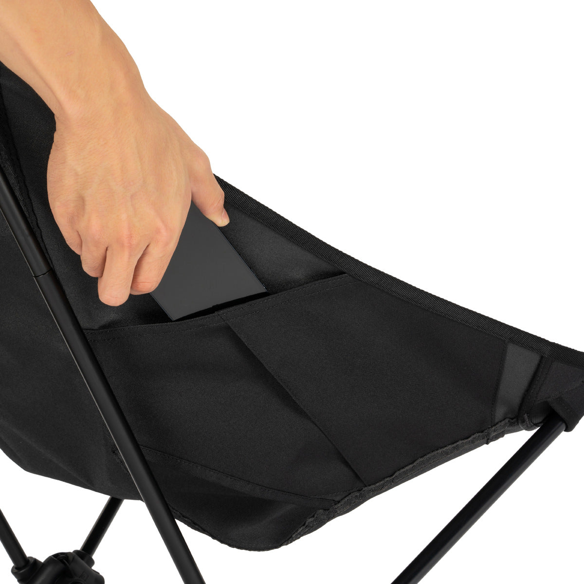タクティカルチェアをベースに背もたれを長くし、よりリラックスできるようにデザインされたハイバックチェアです。座面の高さもロースタイルに丁度良い設定となっています。スタッフバッグ(収納袋)を足下のフレームに取り付けると、小物入れとしても利用できます。