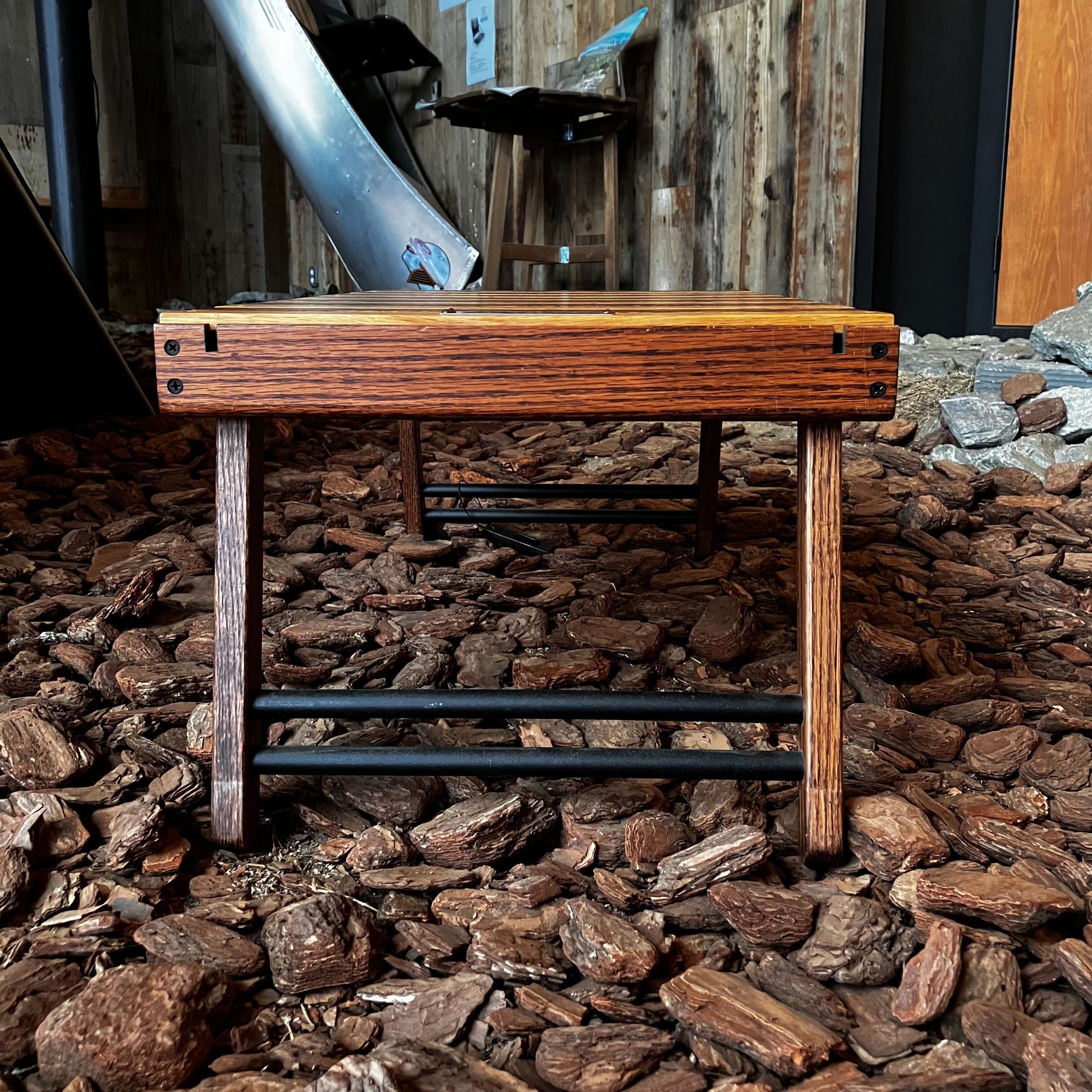 両サイドにアイアンプレートを装着可能なウッドテーブル。広さをしっかり確保しつつ、熱いものもそのまま置ける実用性が魅力です。