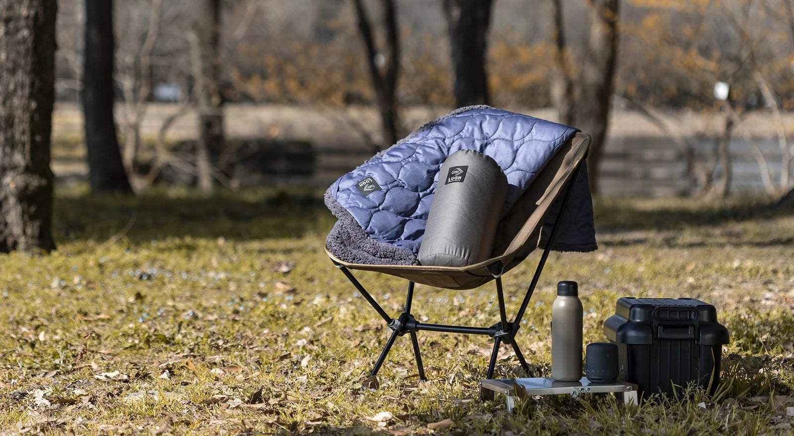 そんな時は、「魔法瓶ブランケットLUGH XSサイズ」とアウトドアチェアを近くの公園や景色のいい土手に持ち出して、外で過ごすあの気持ちのいい空気感を味わってみては。持ち歩きにちょうどいい小さなLUGHが、あなたを日常から外へさっと連れ出してくれます。