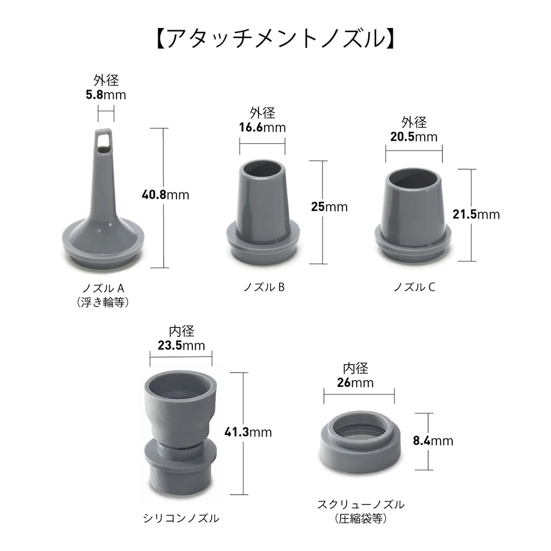 さらに、さまざまな形状の吸排気口に対応できるシリコンノズルも付属。