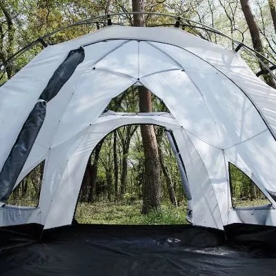 6本のジュラルミンフレームが12ヶ所で交差するジオデシック構造により、高い耐風性と安定性を実現。ベースキャンプレベルの信頼性を、アウトドアフィールドでも体感できます。