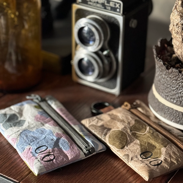 TOPOカモ柄をタイベックにプリントしたポーチ。