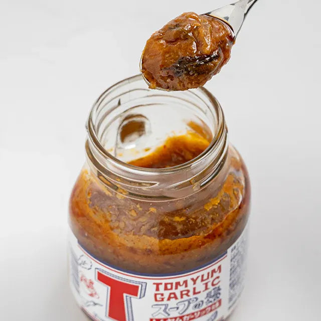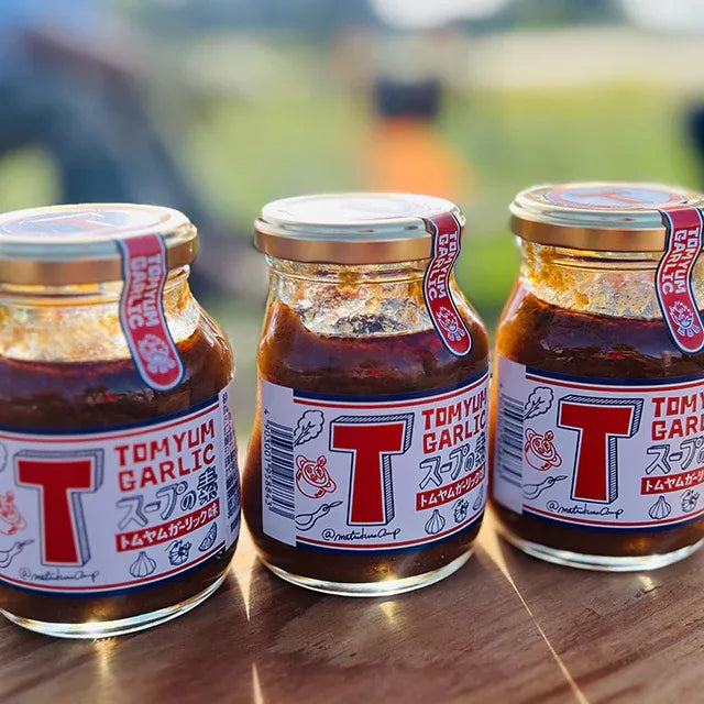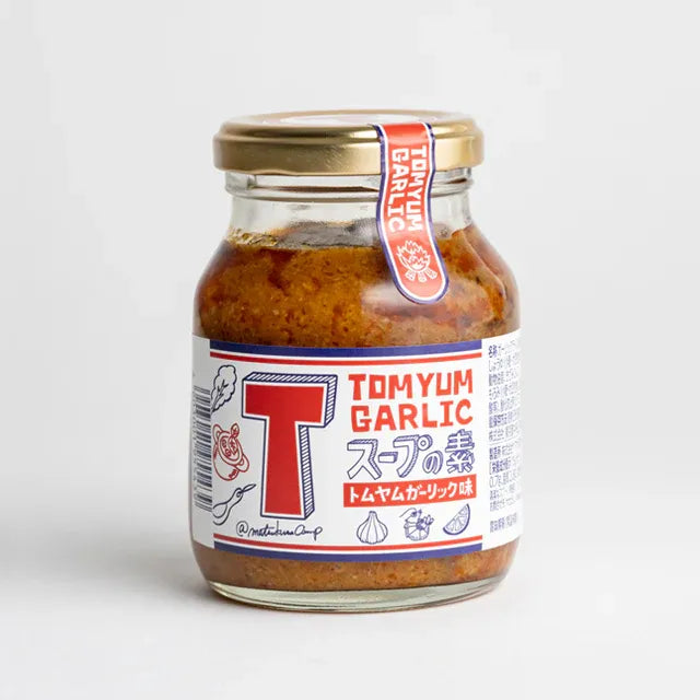 そのトムヤムペーストに加えているのは、青森県産の最高品質と言われる福地ホワイト六片種のにんにくです。香り高くコクのあるにんにくに、オリジナルのトムヤムペースト、辣油、魚醤、レモン果汁を加えてより一層、深みのある味わいを実現しました。市販輸入品のトムヤムペーストと異なり、ガーリックのやみつき感、深い旨味があるのでスープだけではなく、焼き飯のような炒め物の味付けに使えたり、ディップやタレとしてそのままでも美味しく食べられる至福のTスープの素(トムヤムガーリック味)が完成しました。