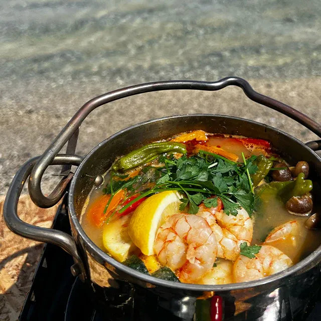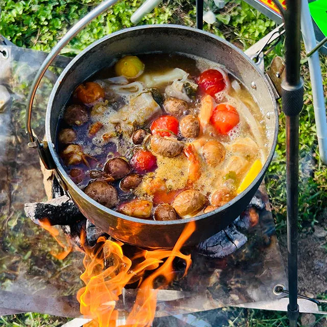 キャンプで余った肉や食材でコトコト煮込むだけ