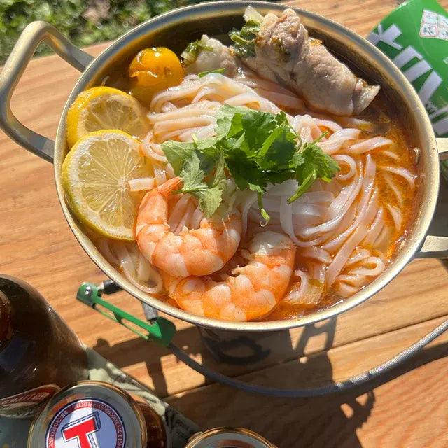 ・基本のスープにエビを具材にすればトムヤムクンに。パクチーやレモンを添えたり、フォーを入れて麺にしても美味しいです。