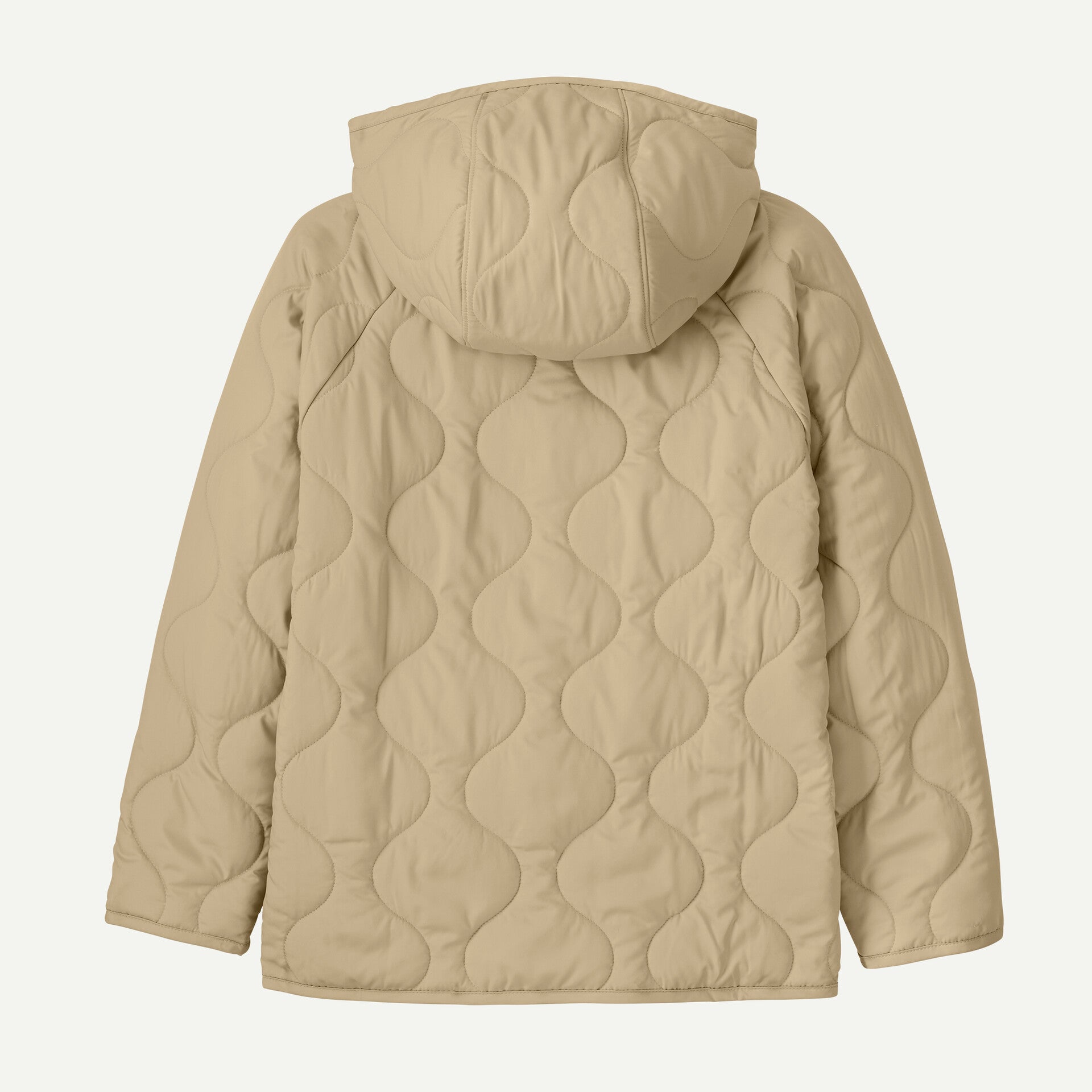 リサイクル・ポリエステル100%のツイルのシェルとリサイクル・ポリエステル100%の80グラム・サーモグリーンのインサレーションを使用したソフトで温かいパファー。個性的なオニオンキルト仕上げで流れるようなラインを描くリラックス・フィットで、2か所からアクセスできるパッチ型ポケットを備え、子どもが選ぶどんな服装にも合う日常着として便利なデザイン。フェアトレード・サーティファイドの工場で製造。