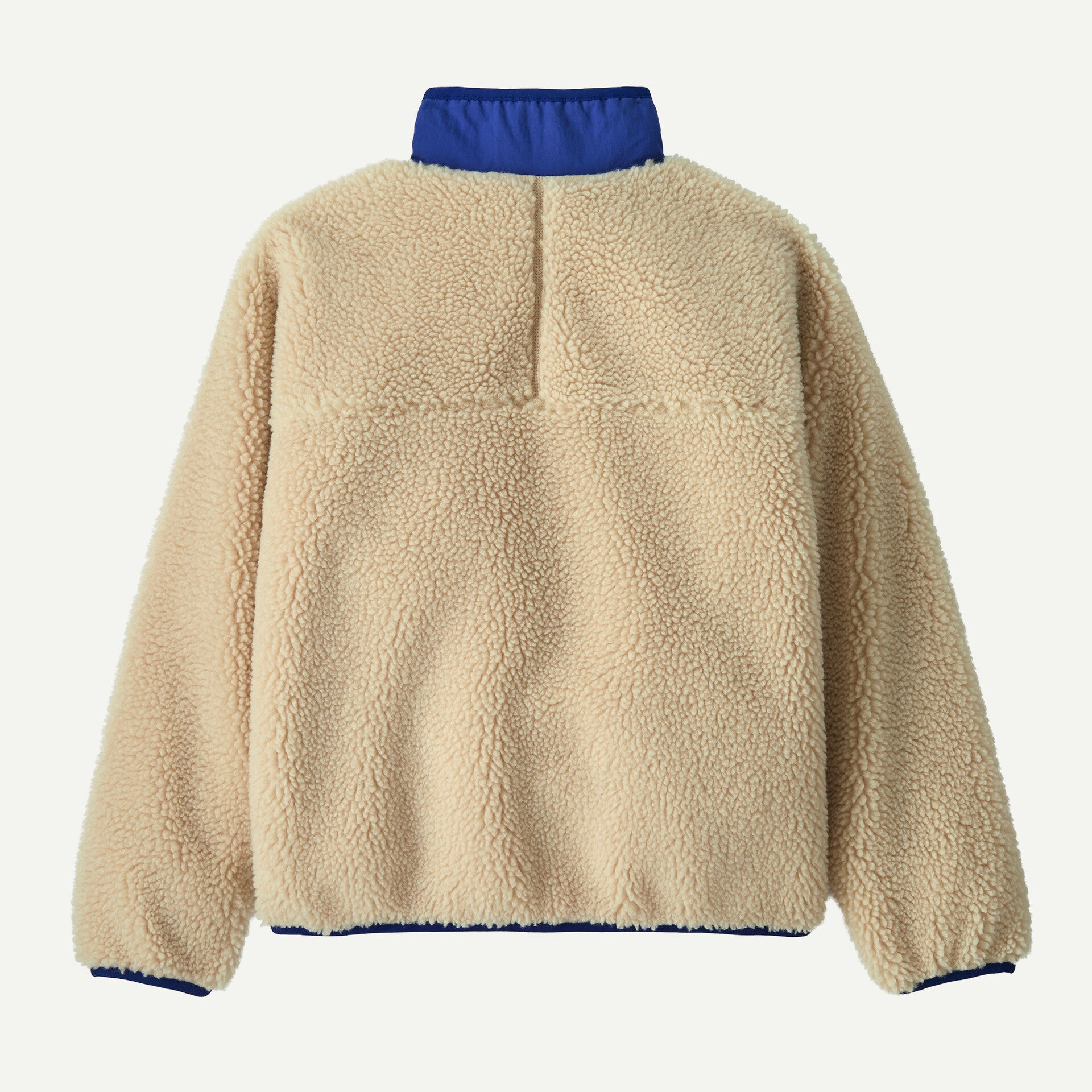 ソフトなリサイクル・ポリエステル100%の6ミリ厚パイル・フリースを使用した、防風性と保温性を提供するキッズ用のレトロX・ジャケットは、リサイクル・ポリエステル100%のタフタの裏地付き。パタゴニアの伝統を受け継ぐこのスタイルを大人用にも子供用にも、プラスチック汚染の危機にさらされている沿岸部の共同体から供給された、オーシャンサイクルの認証済みのリプリーブ・リサイクル・ポリエステル100%でクリーンアップ。フェアトレード・サーティファイドの工場で製造