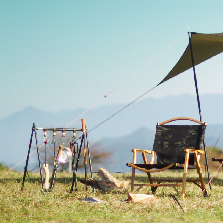 高さも変化できるSNIPE HANGERは、1台で38cmと60.5cmの2サイズのハンガーラックとして使用可能。ソロキャンプはもちろん、グループ、ファミリーにこれ1台でOK!