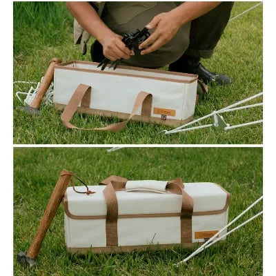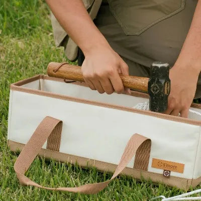 横長サイズで布が固く厚いので尖ったものや工具を入れても型崩れしにくくなっています。ツール系の持ち運びに便利な収納バッグです。