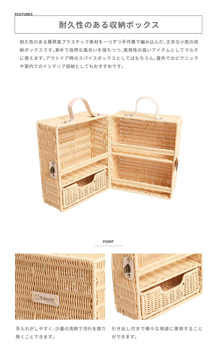 アウトドア時のスパイスボックスとしてはもちろん、屋外でのピクニックや室内でのインテリア収納としてもおすすめです。