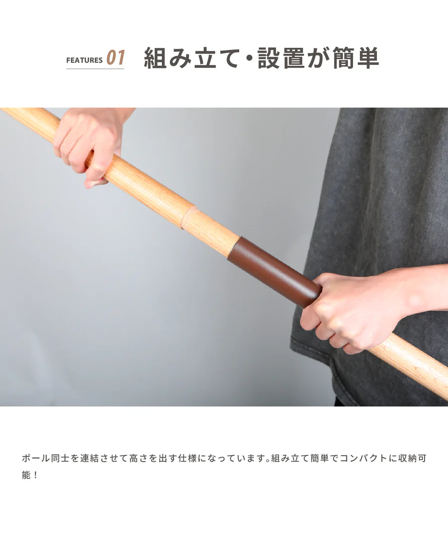 ポール同士を連結させて高さを出す仕様になっています。組み立て簡単でコンパクトに収納可能!!