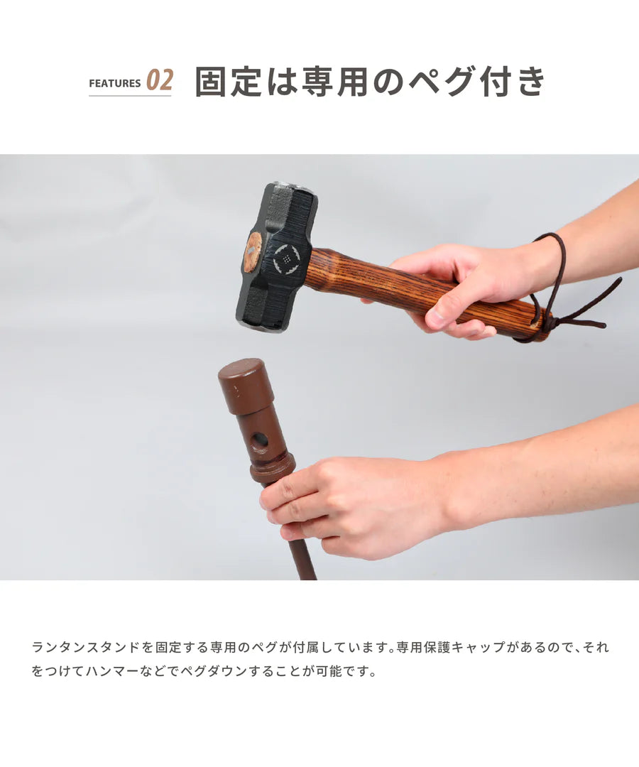 ランタンスタンドを固定する専用のペグが付属しています。専用保護キャップがあるので、