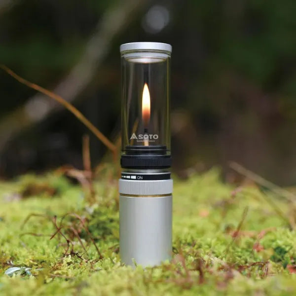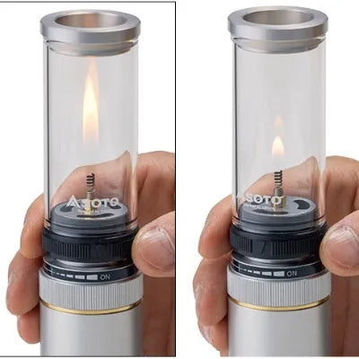 充てん式専用タンク/OD缶どちらにも取り付けできるキャンドル風ガスランタン。