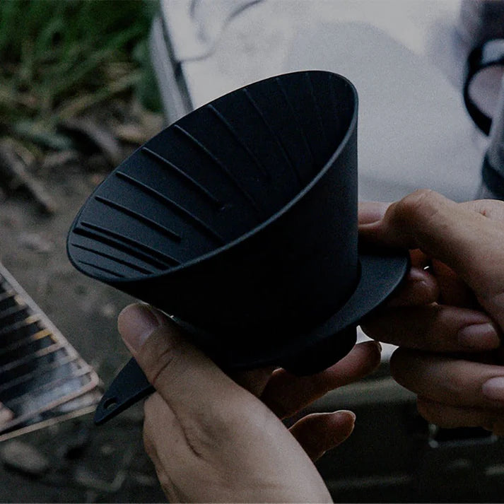 折りたたんでコンパクトに持ち運べるアウトドア用ドリッパー。